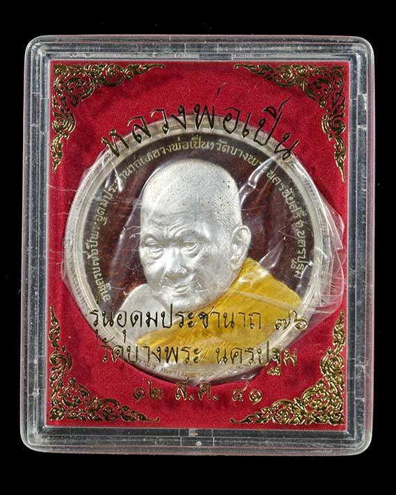 รูปหล่อครึ่งองค์ หลวงพ่อเปิ่น วัดบางพระ ปี2536 เนื้อนวะ พร้อมกล่อง |