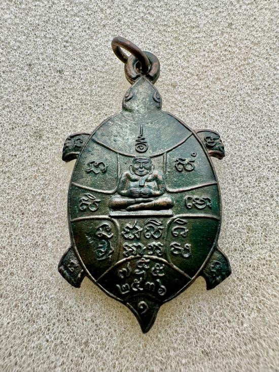 เหรียญพญาเต่าเรือนหลวงปู่หลิว รุ่นปางเปิดโลกจิ๋ว ปี 39 (หน้าหนุ่ม)วัดไร่แตงทอง เนื้อทองแดง ผิวไฟ |