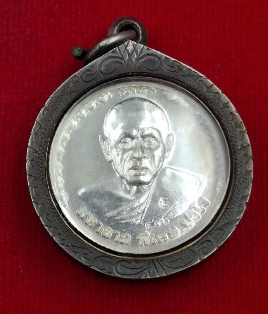 เหรียญบารมีสูง หลวงปู่แผ้ว ปวโร วัดรางหมัน จ.นครปฐม เลี่ยมใส่จีวรสายสิญจน์ |