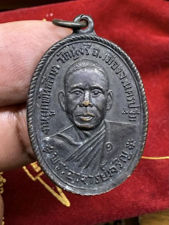 เหรียญงานผูกพัทธสีมา หลวงพ่อเจริญ วัดทุ่งรี อ.เมือง จ.นครปฐมรุ่น หนึ่ง เนื้อทองแดงปี2517สวย |