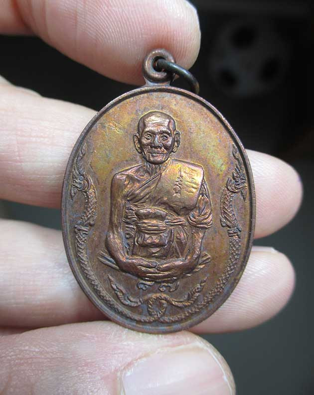 เหรียญพญาเต่าเรือน หลวงปู่หลิว รุ่นสุขใจ เนื้อทองแดง ออกโดยวัดไร่แตงทอง จังหวัดนครปฐม ในปี พ.ศ. 2537 |