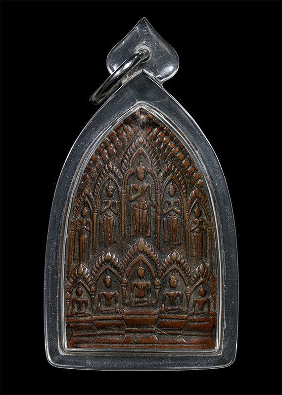 พระพิมพ์ปรกโพธิ์ใหญ่ หลวงปู่บุญ หลังยันต์โต๊ะกัง ปี 2456 เนื้อดิน |