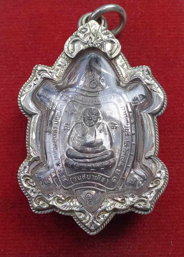 เหรียญพญาเต่าเรือน หลวงปู่หลิว รุ่นสบายใจ เนื้อเงิน เลี่ยมเงิน สวยมากครับ |