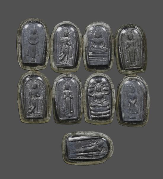 ปรกใบมะขาม หลังยันต์ หลวงพ่อแช่ม พระประจำวัน 9ใบ |