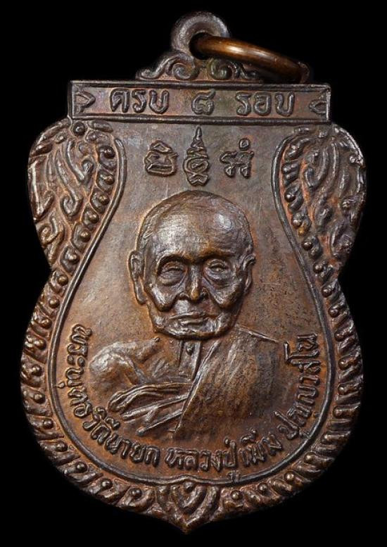 เหรียญใบขี้เหล็ก หลวงปู่แผ้ว วัดรางหมัน จ.นครปฐม ปี 2556 รุ่นสุดท้าย เนื้อฝาบาตร |