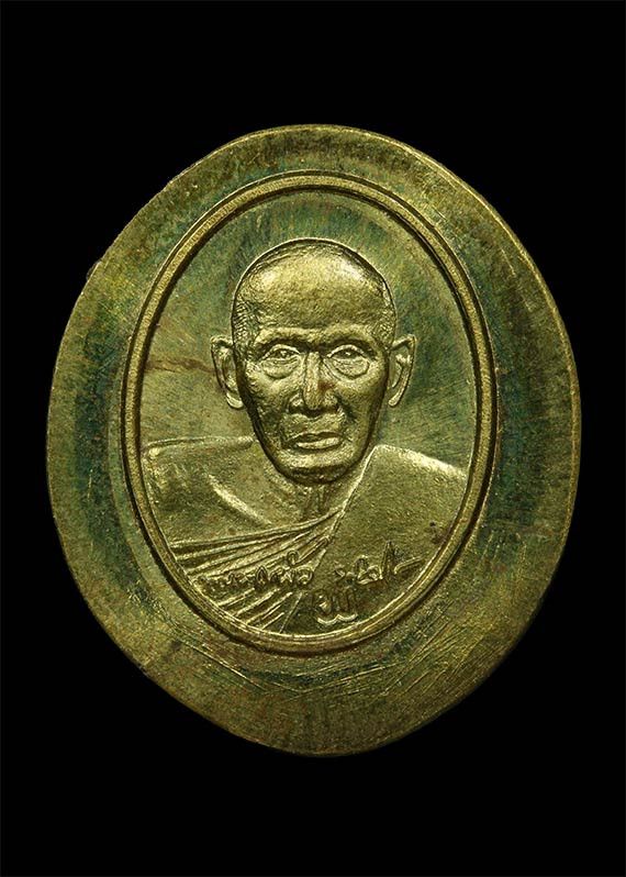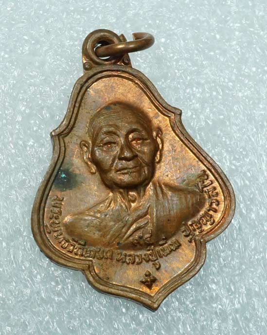 เหรียญหล่อหลวงพ่อวัดไร่ขิง จ.นครปฐม พิมพ์หยดน้ำหลังเรียบ เนื้อสำริด ปี 2520 |