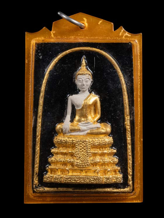 พระยอดธง หลวงพ่อน้อย วัดธรรมศาลา รุ่นสร้างโรงเรียน เนื้อทองเหลือง จ.นครปฐม ปี 2512 |