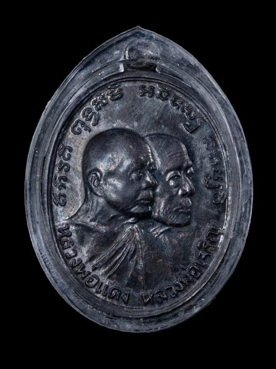 เหรียญหลวงพ่อแดง วัดเขาบันไดอิฐ รุ่นแจกแม่ครัว บล๊อคไหล่จุดเนื้อทองแดงรมดำ เดิมๆ |