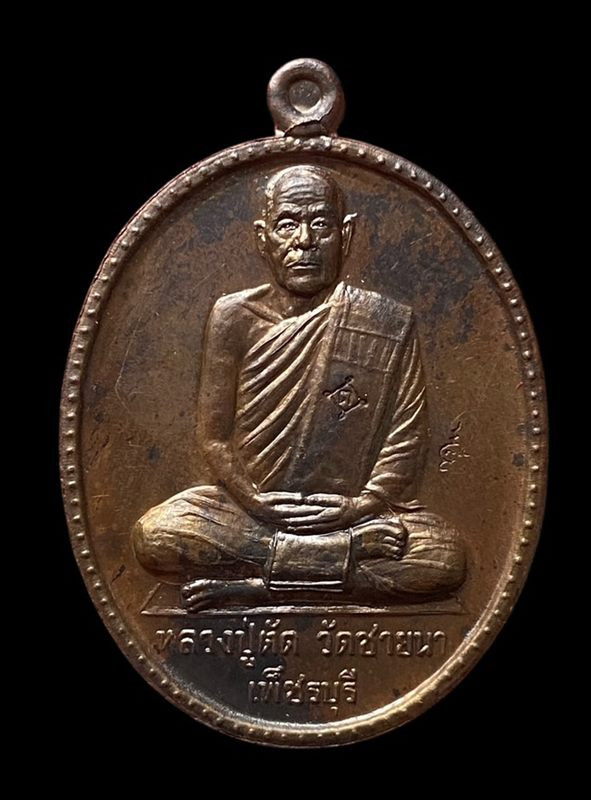 เหรียญหลวงพ่อแดง วัดเขาบันไดอิฐ รุ่นแจกผ้าป่า พิมพ์หลัง ๗ เอียง (บล็อกทองคำ) เนื้อทองแดง ปี 2516 จ.เพชรบุรี |