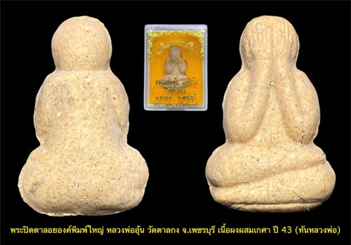 พระปิดตาลอยองค์พิมพ์ใหญ่ หลวงพ่ออุ้น วัดตาลกง เพชรบุรี เนื้อ ผงผสมเกศา