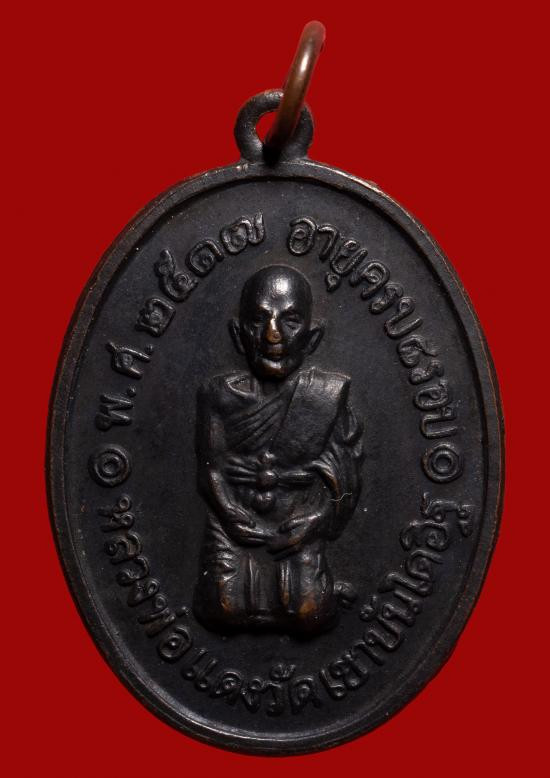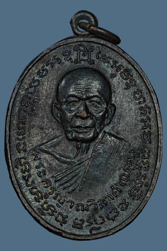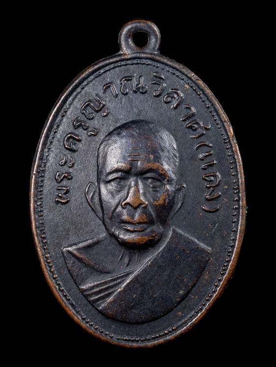 เหรียญ หลวงพ่อแดง วัดเขาบันไดอิฐ รุ่น จปร. เนื้อทองแดงรมดำ ปี 2513 |