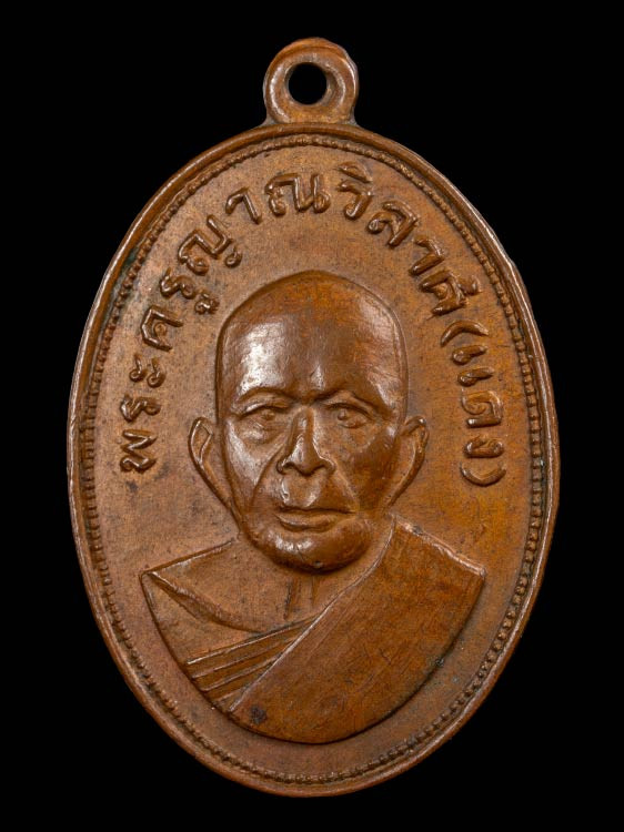 เหรียญหลวงพ่อแดง(วัดเขาบันไดอิฐ) หลวงพ่อเจริญ(วัดทองนพคุณ) วัวลาน บล็อกยันต์ทะลุ ปี2513 เนื้อทองแดง |