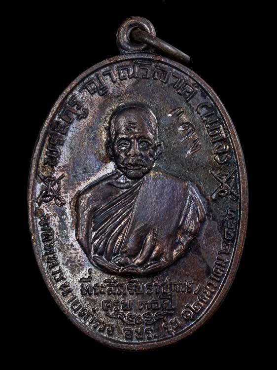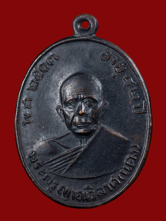 เหรียญหลวงพ่อแดง วัดเขาบันไดอิฐ รุ่นแม่ทัพ ปี 2511 เนื้อทองแดงรมดำ พิมพ์ไม่มีดาว |