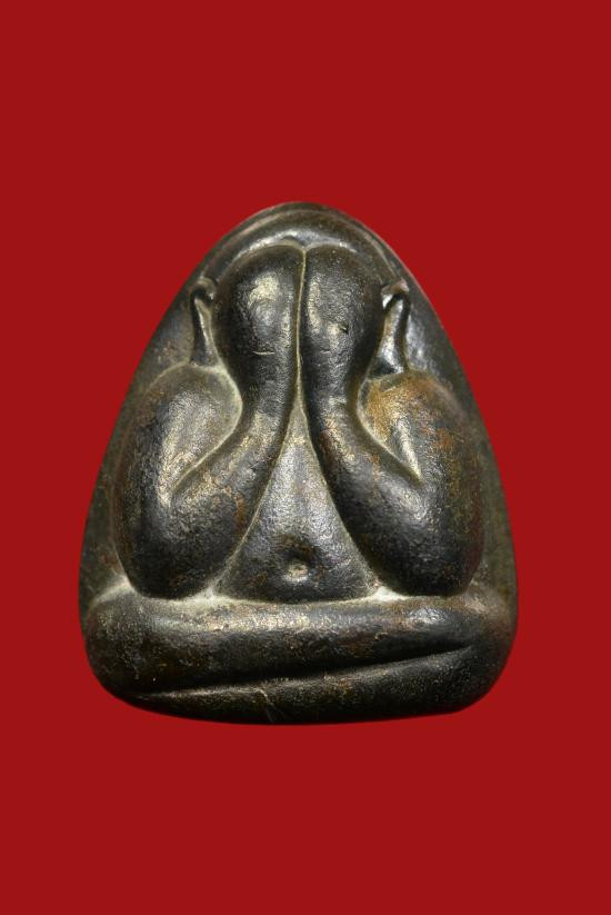 เคาะเดียว พระปิดตาเข่าตรง เนื้อสัมฤทธิ์กล่องเดิม ปี 2549 |