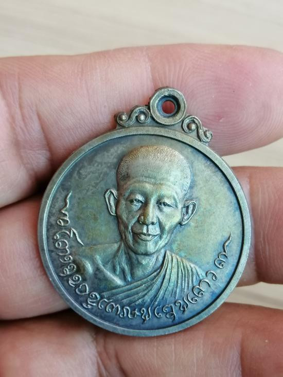 เหรียญยืน รุ่นบารมี 81 เนื้อเงิน หลวงพ่อเกษม เขมโก สร้างปี พ.ศ.2535 |