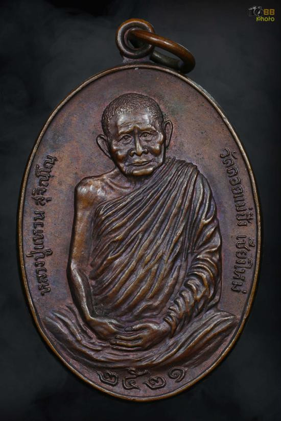 เหรียญรูปไข่สร้างเจดีย์ 84 หลวงปู่แหวน สุจิณฺโณ วัดดอยแม่ปั๋ง ปี พ.ศ 2517 |