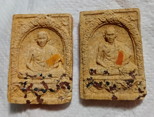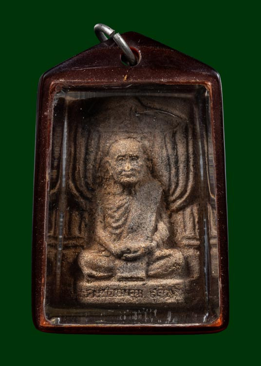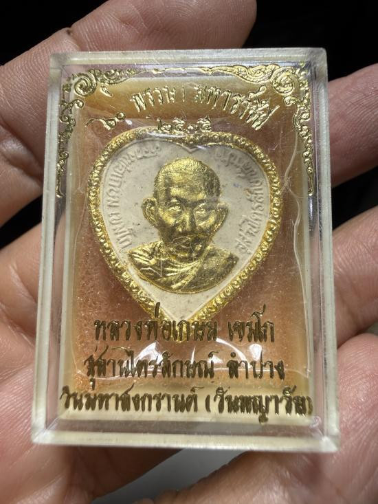 หลวงพ่อเกษม เขมโก พระเนื้อผงรูปหัวใจ ปิดทองติดจีวร ฝังตะกรุดเงิน |