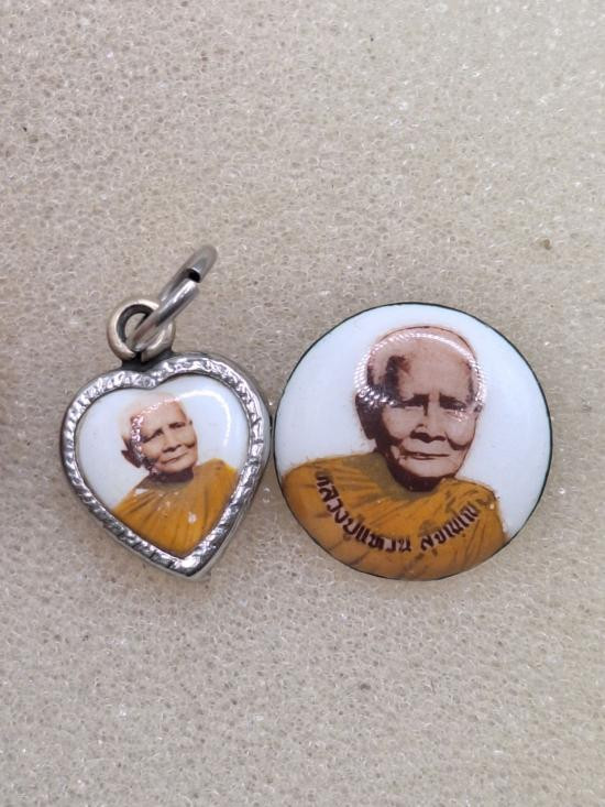 หลวงปู่แหวน วัดดอยแม่ปั๋ง ใบโพธิ์เล็ก ปี 27 ทองแดง 2 องค์ |