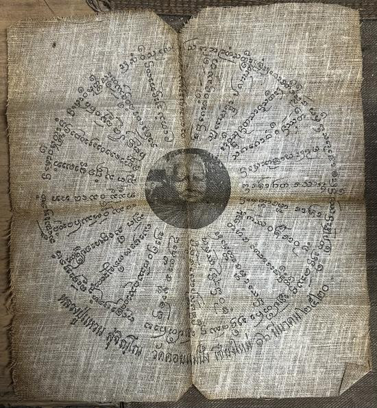 ผ้ายันต์หลวงปู่แหวน ปี2520 ผ้าดิบแข็ง พับเก่าเก็บ สภาพสวยมาก มีแค่เจ้าของเดิมแง้บมุมมาตามรูปครับ |