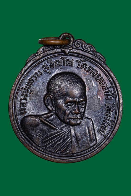เหรียญหลวงปู่แหวน สุจิณฺโณ วัดป่าเจริญธรรม เชียงใหม่ ปี2517 เนื้อทองแดง ตอกโค๊ต |