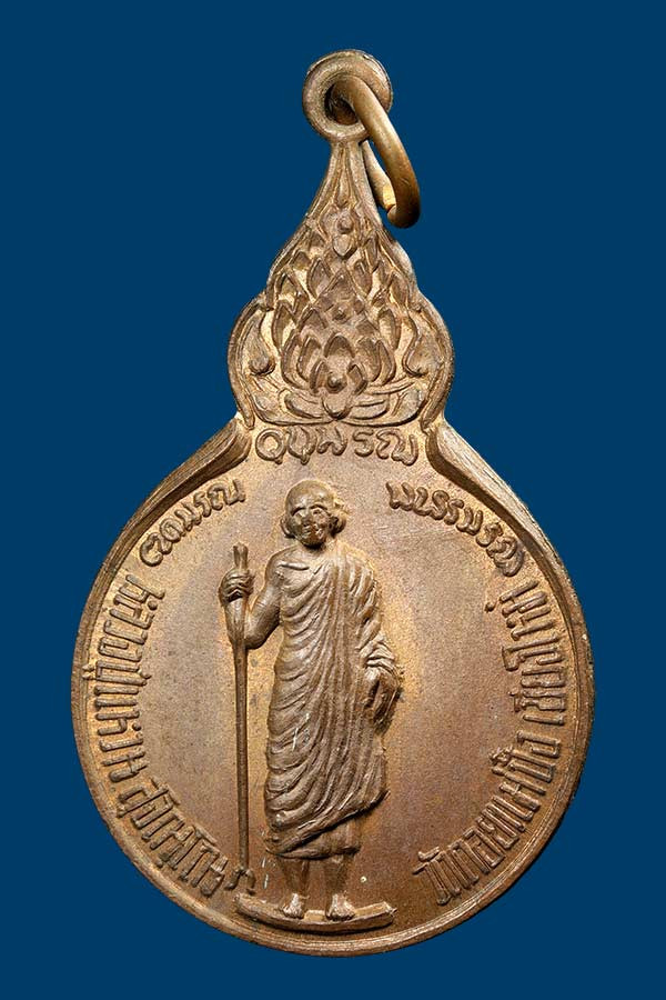 วัดใจเคาระเดียวแดง เหรียญยืนถือไม้เท้า รุ่นรวมใจ ( 5 แชะ ) หลวงปู่แหวน วัดดอยแม่ปั๋ง จ.เชียงใหม่ ปี 2518 B |