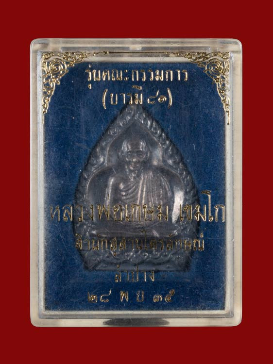 พระปิดตาสารพัดดี หลวงพ่อเกษม เขมโก เนื้อเงิน รุ่นพุทธคุณ ปี 38 เลี่ยมทองคำ |