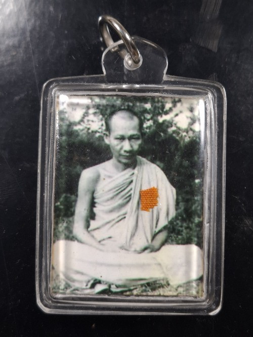 รูปภาพหลวงพ่อเกษม เขมโก หลังปั้มหมึก ติดจีวร ปี2518 ขนาด 1 นิ้ว no.1 |