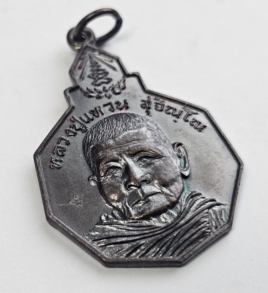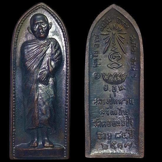 (5)วัดใจเหรียญหลวงปู่แหวน พิมพ์ยืน หลังรางปืน เนื้อทองแดงรมดำเดิมๆ ปี 2517 จ.เชียงใหม่ |
