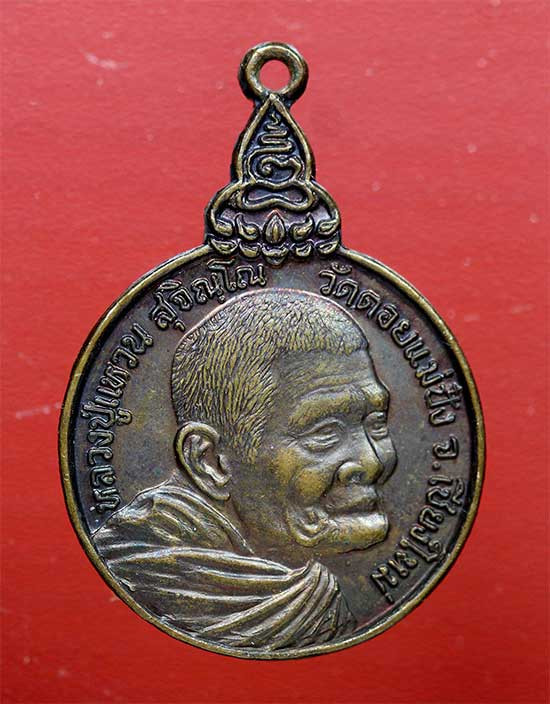 เหรียญหลวงปู่แหวน วัดดอยแม่ปั๋ง จังหวัดเชียงใหม่ รุ่นรักษาดินแดนไทย เนื้อทองแดง ปี 2520 |