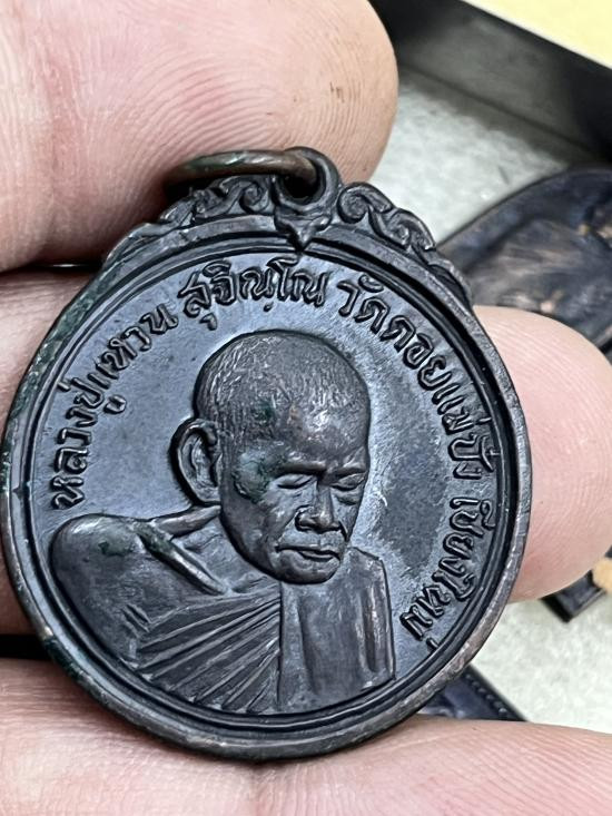 เหรียญกลม หลวงปู่แหวน สุจิณโน วัดดอยแม่ปั๋ง เชียงใหม่ ปี 2528 หลังดอกบัว อายุ 98 ปี พิมพ์ใหญ่ รวม 5 เหรียญ ผิวรุ้งสวยครับ |
