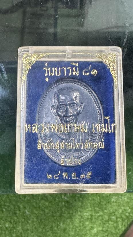 หลวงพ่อเกษม เหรียญ7รอบ เนื้อฝาบาตร มาพร้อมกล่องเดิม รับประกันแท้ตามกฎ |