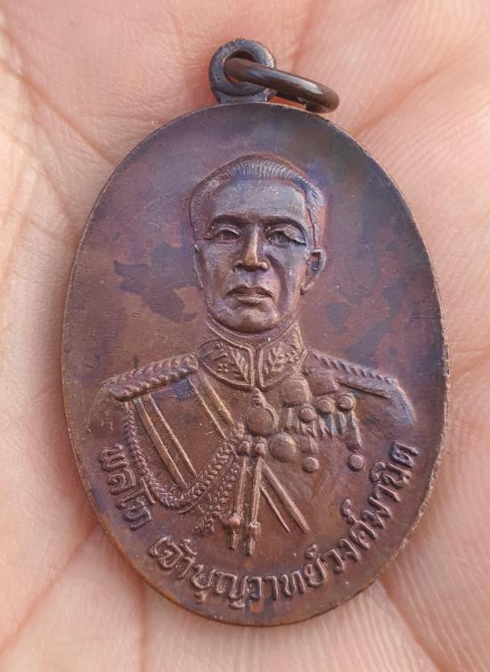 วัดใจเหรียญพลโท เจ้าบุญวาทย์วงศ์มานิต หลวงพ่อเกษม เขมโก ปลุกเสก เนื้อทองแดง ปี 2518 |
