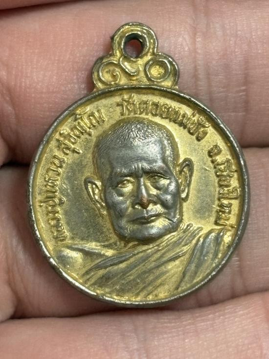 เหรียญทรงยินดีขนาดใหญ่ 3 ซม.เนื้อเงินลงยาหน้าทองคำแท้ วัดหัว ลำโพง หลวงพ่อเกษมปลุกเสก |