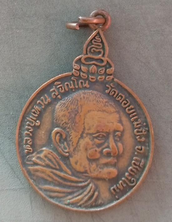 เหรียญหลวงปู่แหวน วัดดอยแม่ปั๋ง หลัง ภปร. ปี 2521 เนื้อทองแดงสภาพตามรูป ราคาเบาๆ |