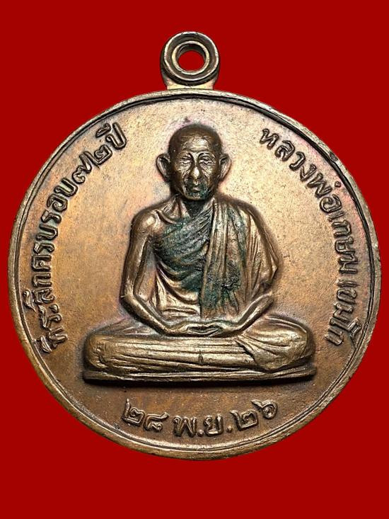 เหรียญ 6 รอบ พิมพ์ใหญ่ หลวงพ่อเกษม เขมโก สุสานไตรลักษณ์ จ.ลำปาง ปี ๒๕๒๖ เนื้อทองแดง |