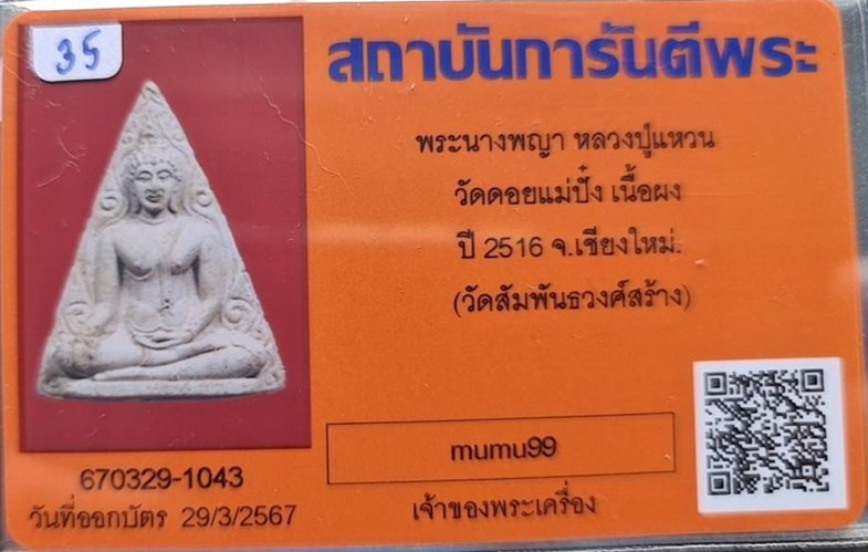 มวลสารมหามงคล ... พระเนื้อผงอังคารธาตุ " จิตกาธาน " หลวงปู่แหวน สุจิณฺโณ วัดดอยแม่ปั๋ง อ.พร้าว จ.เชียงใหม่ ปี พศ.2530 |