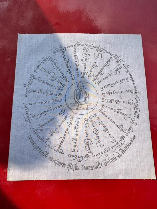 หลวงปู่แหวน ผ้ายันต์ ปี 2524 ขนาดแขวนหน้ารถ หายาก สภาพสวยเดิม |