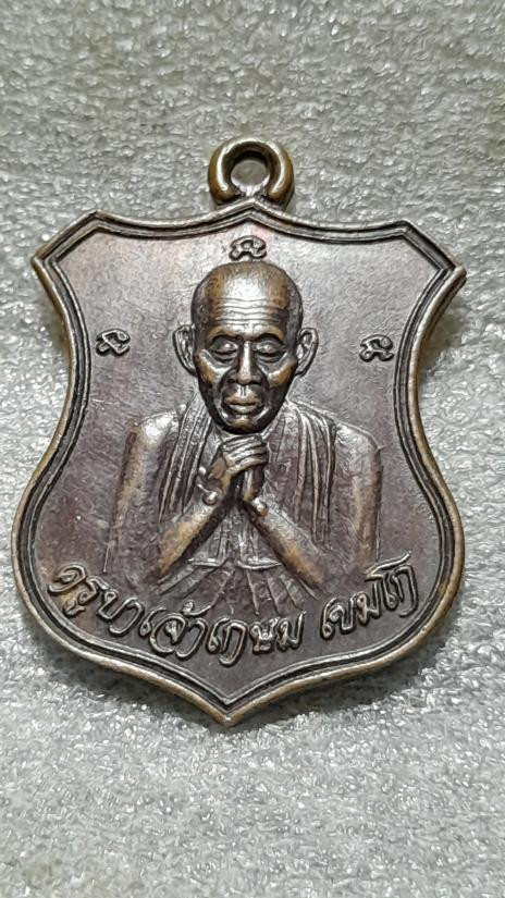 เหรียญหลวงพ่อเกษม เขมโก สุสานไตรลักษณ์ จ.ลำปาง รุ่นลายเซ็นต์ หลัง ภปร ปี 2529 |