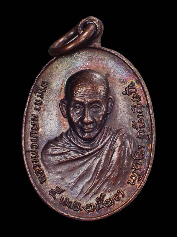 หลวงปู่แหวน รุ่น 4 พิมพ์ยืน หลังรางปืน จ.เชียงใหม่ ปี 2517 เหรียญประสบการณ์ เนื้อทองแดงรมดำ พระพิธีใหญ่ |