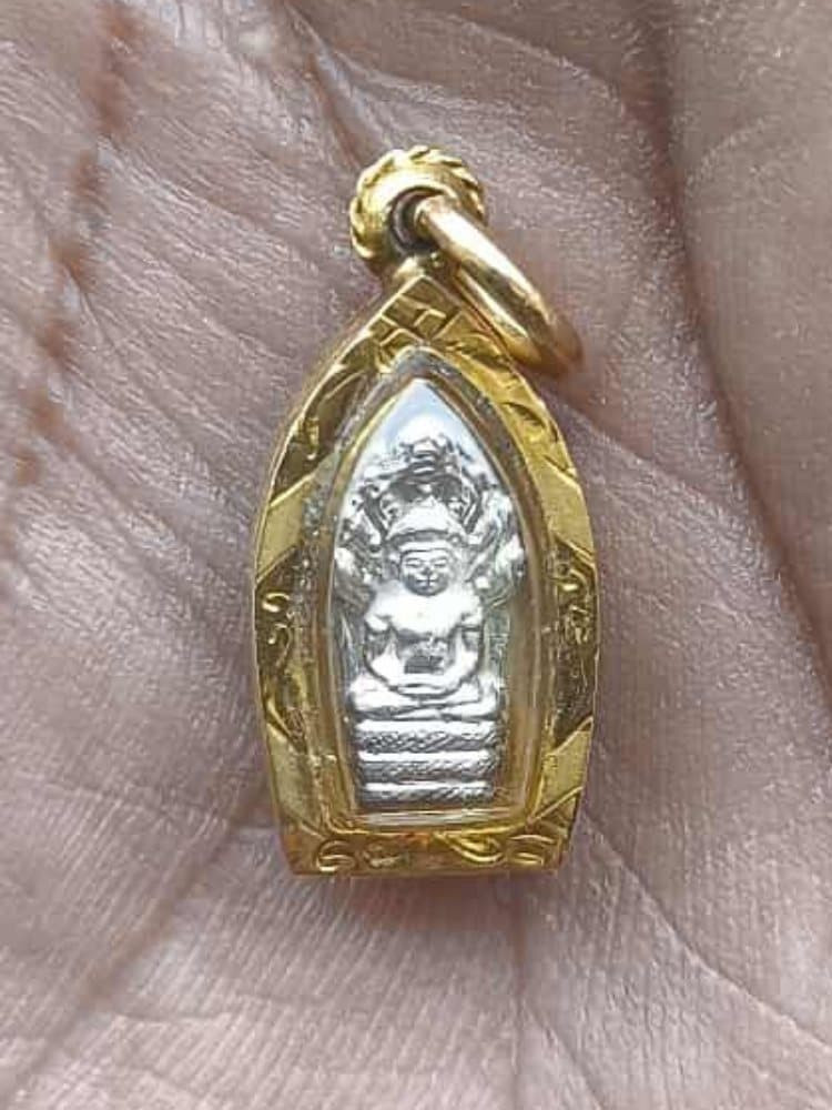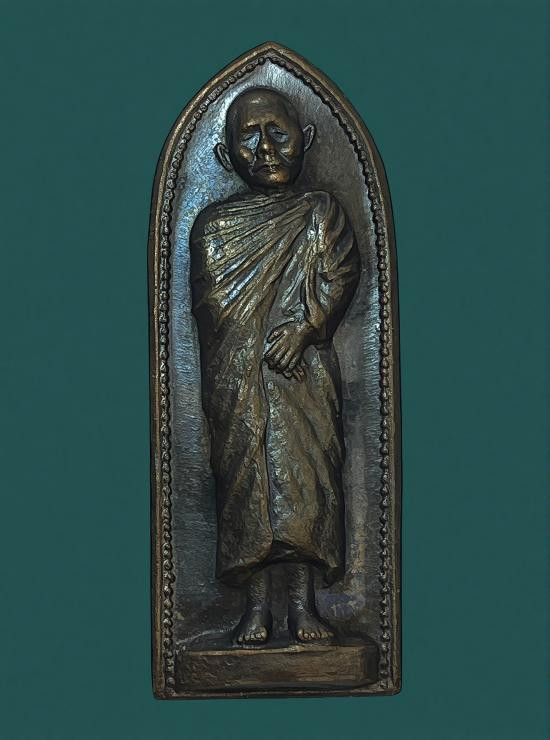 พระปรกใบมะขามหลวงปู่แหวนออกวัดสัมพันธวงศ์ ปี 2520 เนื้อเงิน |