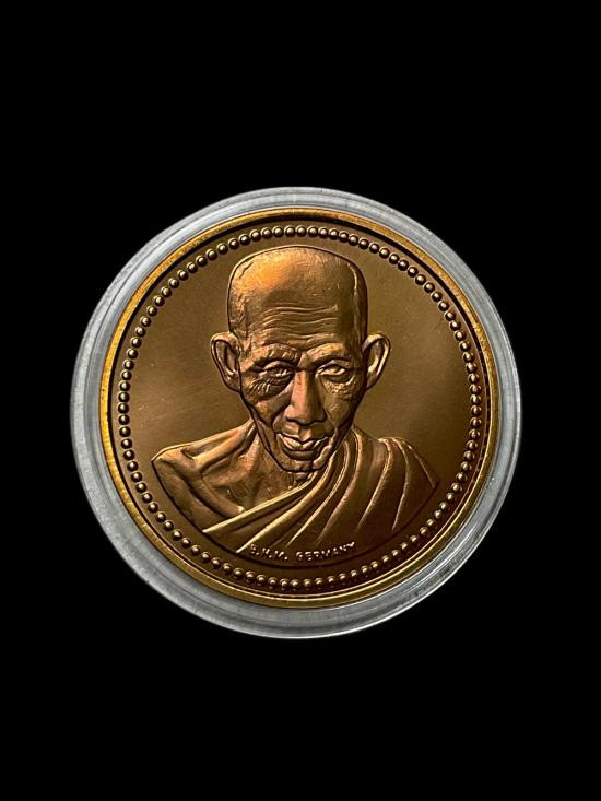 เหรียญพรหลวงปู่ รุ่นสมปราถนา เนื้อกะไหล่ทอง หลวงพ่อเกษม เขมโก ปี 2537 พร้อมบัตร G |