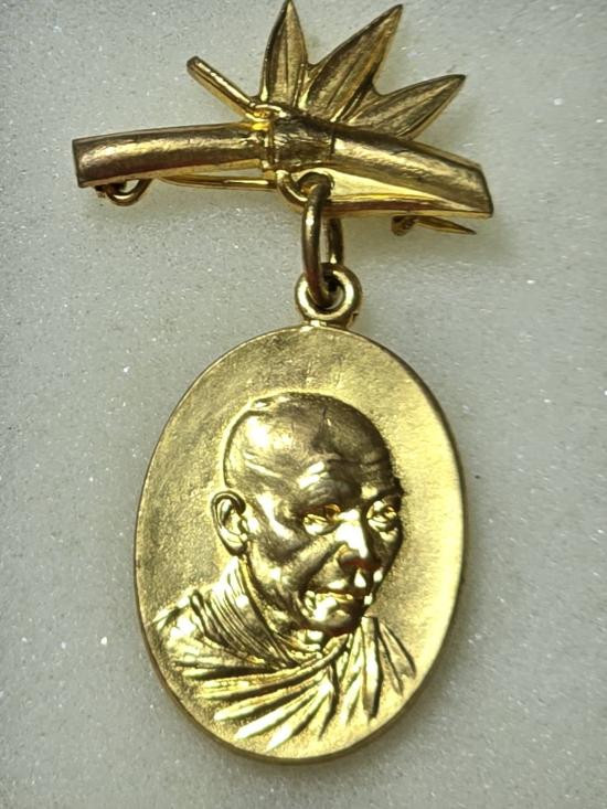 เหรียญยืนหลังพระปรมาภิไธยย่อ ภ.ป.ร. หลวงปู่แหวน สุจิณฺโณ วัดดอยแม่ปั๋ง อ.พร้าว จ.เชียงใหม่ ปี 2519 |