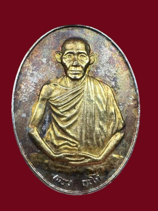 -วัดใจเคาะเดียวแดง-เหรียญหลวงพ่อเกษม เขมโก สุสานไตรลักษณ์ ลำปาง เนื้อกะไหล่เงินลงนะหน้าทอง ปี38 |
