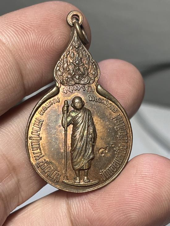 เหรียญยืนถือไม้เท้า หลวงปู่แหวน สุจิณฺโณ วัดดอยแม่ปั๋ง ปี 2518 ตอกโค๊ด |