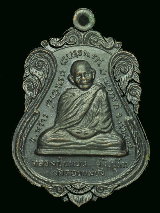 เหรียญโภคทรัพย์ หลวงปู่แหวน ปี 2520 เนื้อทองแดงรมดำ ตอกโค้ด วัดดอยแม่ปั๋ง จ.เชียงใหม่ |