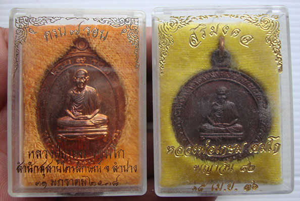 เหรียญ 7 รอบ ปี2538 ตอกโค๊ต + เหรียญ สิริมงคล ปี2536 ตอกโค๊ต ( หลวงพ่อเกษม เขมโก ) 2 เหรียญ กล่องเดิมสวยครับ |