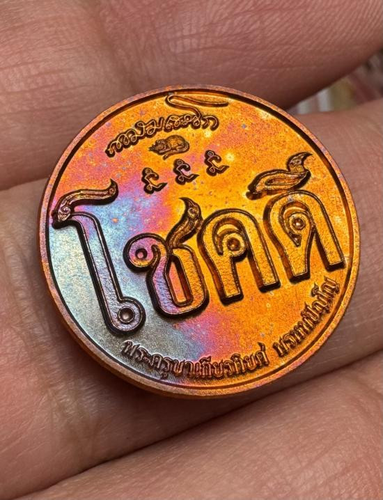 เหรียญโชคดีหลังมังกร ตามรอย เหรียญโชคดีมนตำนาน เนื้อทองแดงผิวรุ้ง แจกผู้ชนะเลิศงานประกวดพระเครื่องที่ จ.ลำปางเท่านั้น เท่านั้น หมายเลข(228) พร้อมกล่องเดิมครับ |
