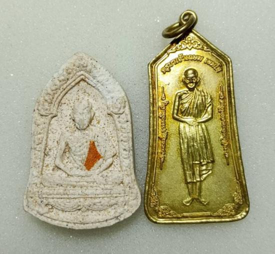 พระผง หลวงปู่แหวน วัดดอยแม่ปั๋ง หลังมีจีวรและสายสิญจน์ เลี่ยมเก่า |