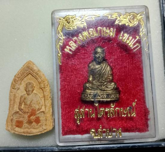 118...........พระผงมงคลเกษม รุ่น 3 ฝังพลอยเสก ติดจีวร หลวงพ่อเกษม เขมโก ปี 2523 สวยเดิม เนื้อเหลืองๆเข้มๆ พิมพ์ลึก ...68823 |