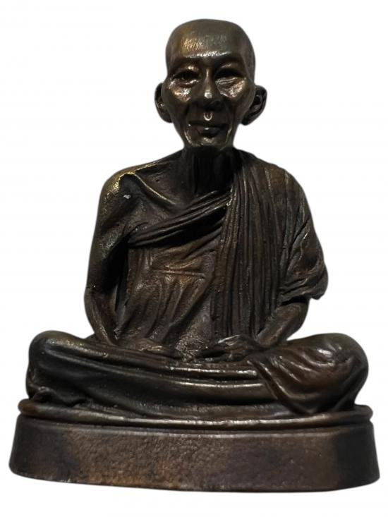 รูปหล่อจัมโบ้ ตั้งหน้ารถ ขนาด 1 นิ้ว รุ่นรวมบุญพญาวัน 84 ปี 2538 หลวงพ่อเกษม เขมโก เนื้อนวะโลหะ ก้นอุดผงและจีวร เลข 900 กล่องเดิม |